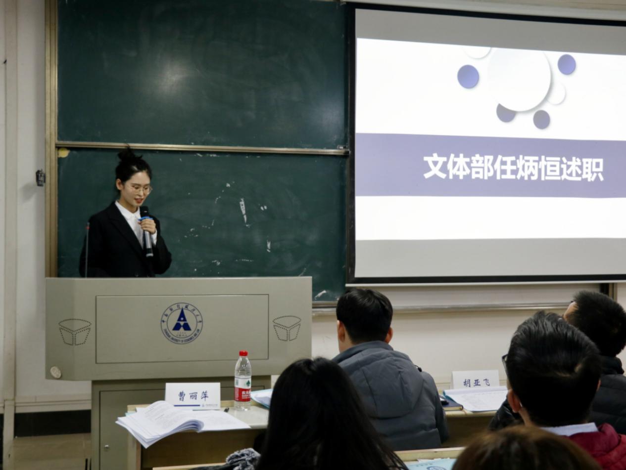 秘书处分管主席郑慧心从学生工作和部门总结两方面进行述职,并表示未来将谨记全心全意为学生服务的宗旨,认真负责地完成部门工作。