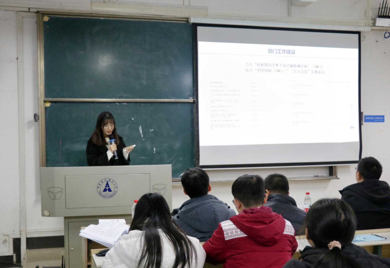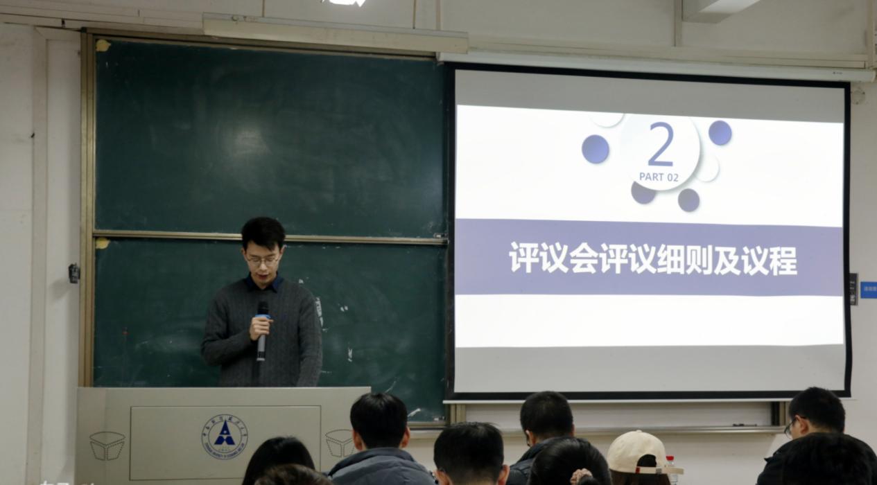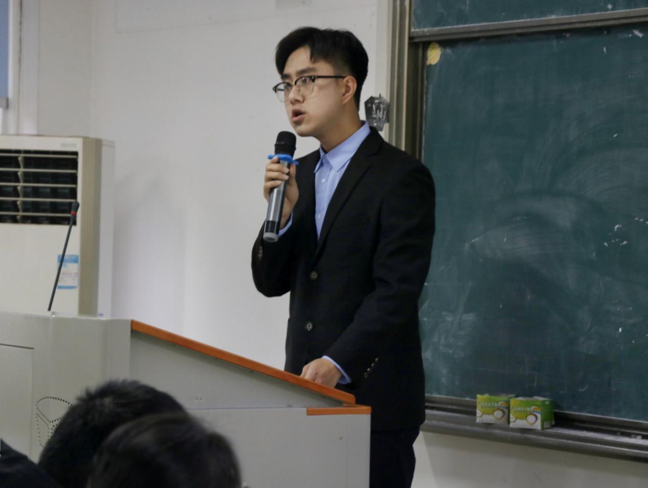学术部分管主席康宛鑫分别就学术部举办的系列学术讲座以及学术性竞赛的开展情况进行详细阐述,并对部门优势、不足、改进措施与未来展望提出了自己的看法。