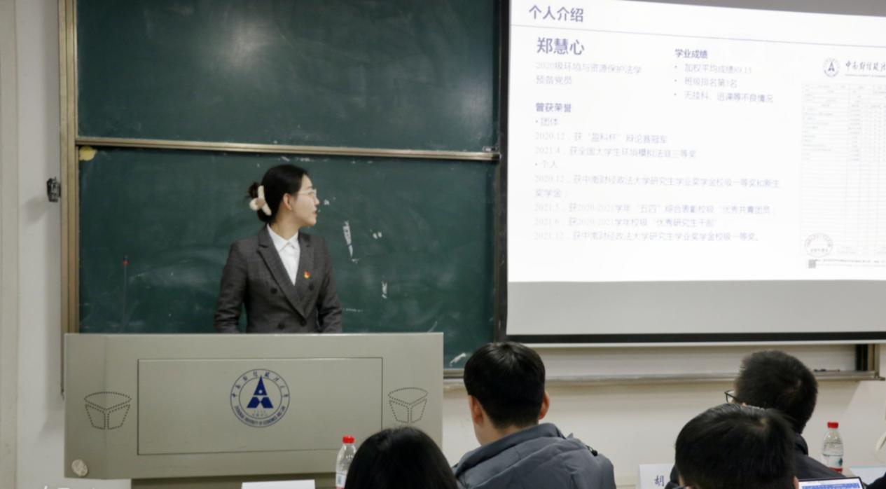 外创部分管主席黄铿从个人情况介绍、年度工作总结、工作总结反思、部门未来展望四个方面对法学院研究生会的工作进行了总结。