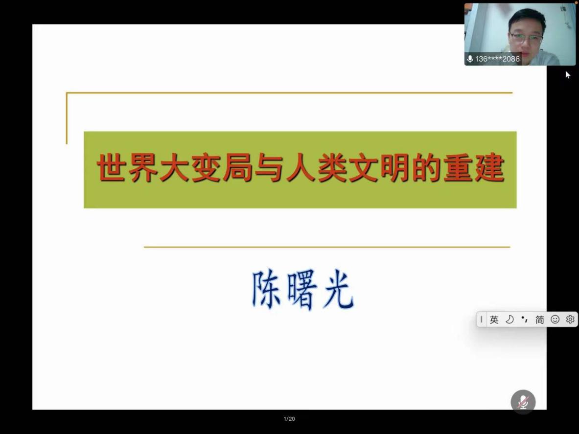 (通讯员:林昇 梁晓莉)2022年3月10日晚7时,由我校研究生院、党委研究生工作部和校研究生会主办,马克思主义学院研究生会承办的第223期“文澜大讲堂”之名家讲坛通过腾讯会议线上形式成功举行。此次讲座以“世界大变局与人类文明的重建”为主题,特邀中共中央党校马克思主义学院副院长陈曙光教授主讲,马克思主义学院副院长荣枢教授主持,副院长韩美群教授和部分教师,马克思主义学院全体硕博士学生及部分外校老师、学子共同参会学习。