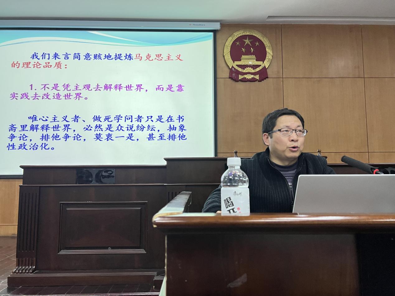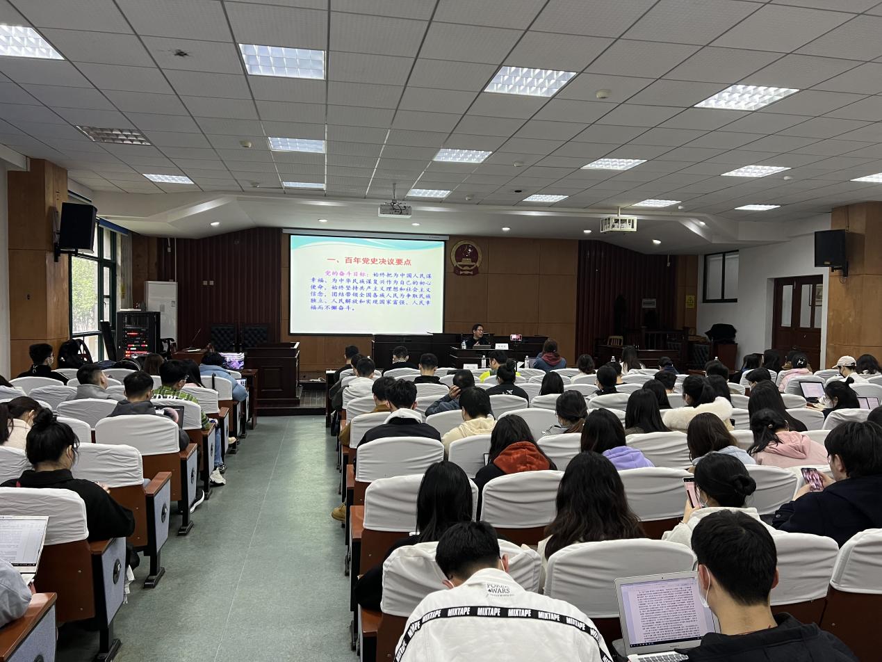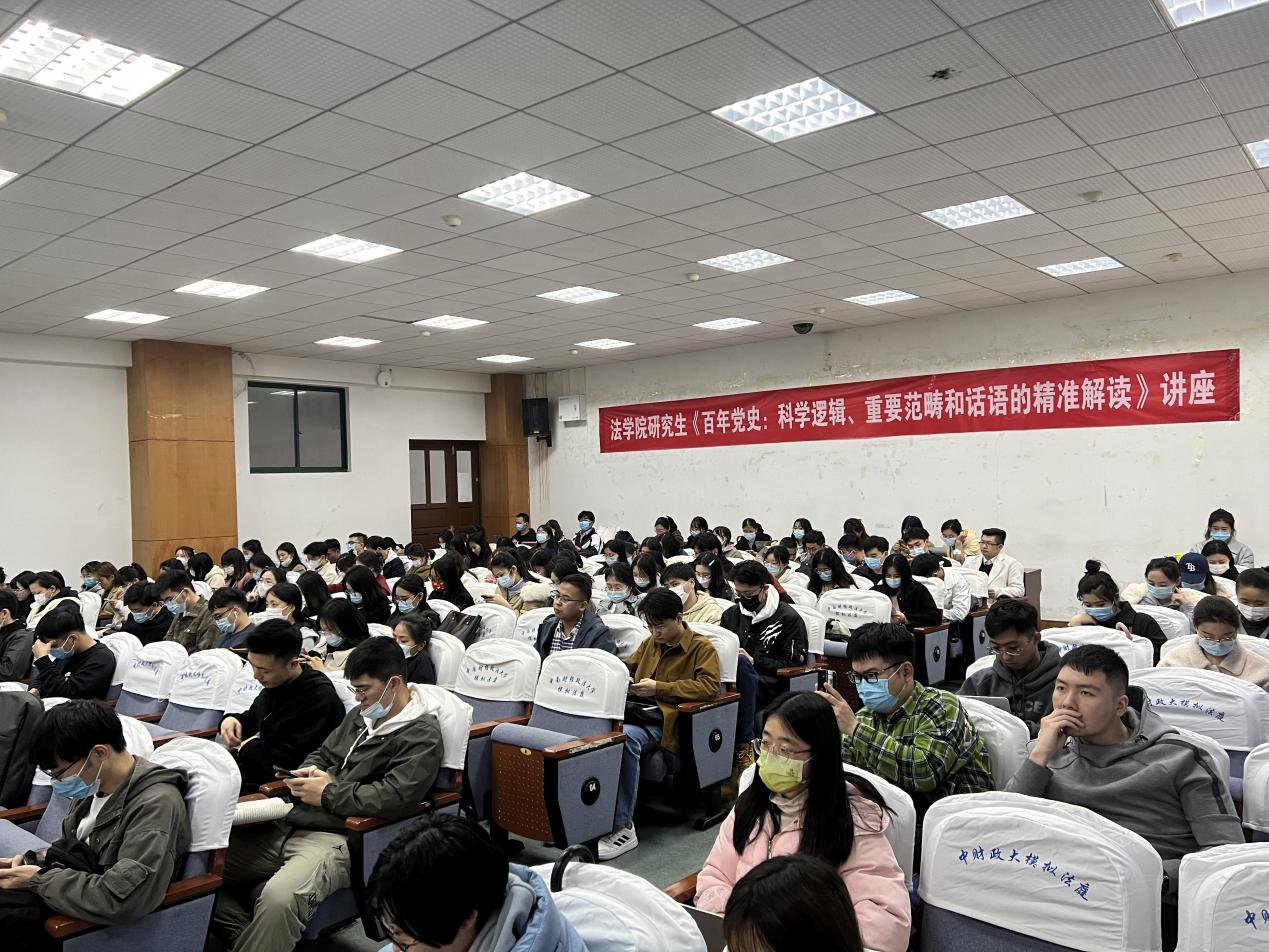 (通讯员:刘洁 廖芸菲)春日渐暖的中原大地,处处奔涌着学习宣传贯彻党的十九届六中全会精神的热潮。为了继续深入学习贯彻中共中央关于党的百年奋斗重大成就和历史经验的决议内容,加强新生党员的党性教育,推动党史学习教育走实走深,3月31日16时,法学院研究生会组织部于文泰楼模拟法庭开展党史学习教育,中南财经政法大学马克思主义学院副教授张瑞堂老师受邀为法学院21级全体研究生党员讲授《百年党史:科学逻辑、重要范畴和话语的精准解读》精品党课,推动全会精神深入人心,凝聚强大奋进力量。