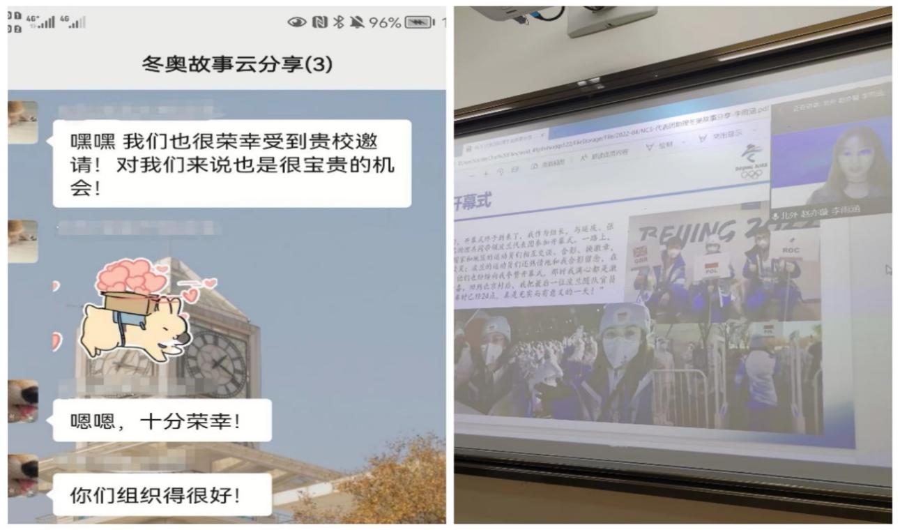 (通讯员 付慧娟 黄丽琼 刘子健 摄影 杨奡 卫瑞)为积极响应“青春献礼二十大,强国有我新征程”迎接学习宣传党的二十大主题宣传教育活动精神,认真学习贯彻习近平总书记给中国冰雪健儿的重要回信精神,唱响冬奥主旋律、传播冬奥知识、弘扬奥林匹克精神,进一步深入开展校研究生会党支部“党建带团建”特色党建品牌活动,2022年4月7日18:30校研究生会党支部在文澴楼525教室开展“冬奥不散场,拼搏向未来”—党团共建携手行特色主题学习活动。各学院(中心)研究生党支部代表、各学院团支部书记参会,此外会议特别邀请到两位北京外国语大学冬奥志愿者嘉宾赵亦璇和李雨涵同学通过视频连线做冬奥故事“云分享”。本次会议由校研究生会党支部书记桂薇同志主持。