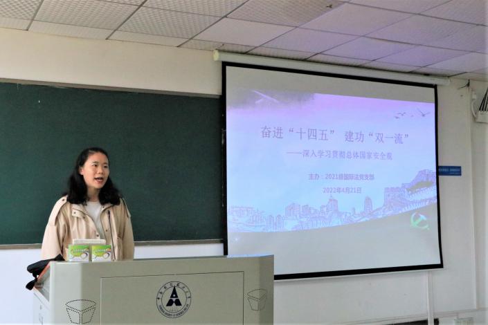 (通讯员:刘洁 高克鑫)正值我国第七个全民国家安全教育日,为了深入学习贯彻习近平总书记关于总体国家安全观的重要论述精神,深刻理解和准确把握总体国家安全观的丰富内涵,进一步了解我国的国家安全形势,4月21日,法学院2021级国际法党支部、环资与社会治理法支部、法律史党支部、经济法党支部在文添楼503联合开展主题党日活动。