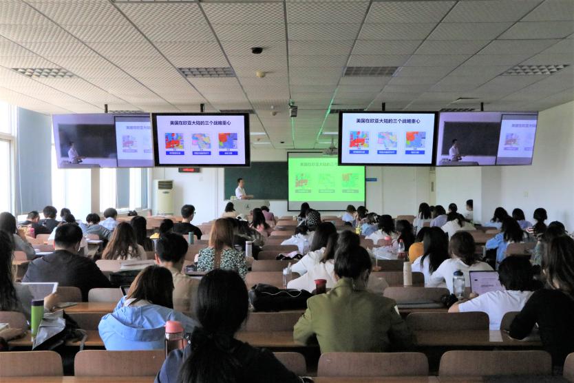 胡万松老师以当前俄乌局势的前因后果为切入点,介绍了世界格局的变迁与发展,通过对美国全球战略调整的介绍、对美欧关系发展的分析,对中美关系现状的解读,从历史和现实两个角度讲解国际形势的成因与发展。同时,胡老师从中国“和文化”和“一带一路”倡议出发,解读中国的国际战略,并带领大家回顾了最近十年的中国周边安全形势,详细分析了中日、中印、中韩关系和台湾问题,指出中美关系最大的不确定性就是台湾问题,强调中国要保持战略定力,强大国力军力,实现中华民族伟大复兴。