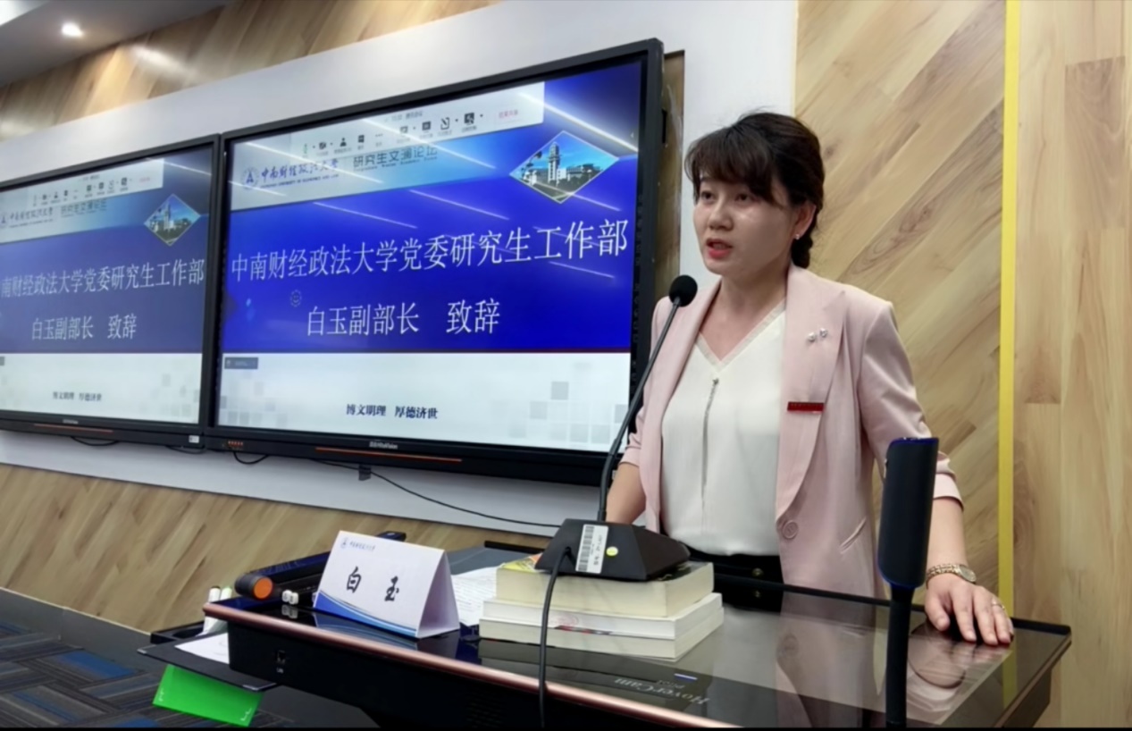 (通讯员:胡迅 摄影:朱炜妍)4月22日下午2时30分,中南财经政法大学第九届研究生“文澜论坛”之研究生会主席高峰论坛以线上、线下相结合的形式在我校文澴楼607教室成功举办。校党委研究生工作部白玉副部长、研究生思想政治教育办公室付慧娟、黄丽琼老师、刑事司法学院彭倩老师出席了此次高峰论坛。全国28所知名高校研究生会代表及各学院(中心)研究生会代表参加了本次活动。校研究生会主席团成员杨奡主持本次论坛。本次论坛由中南财经政法大学研究生院、党委研究生工作部承办,中南财经政法大学研究生会、刑事司法学院研究生会协办。