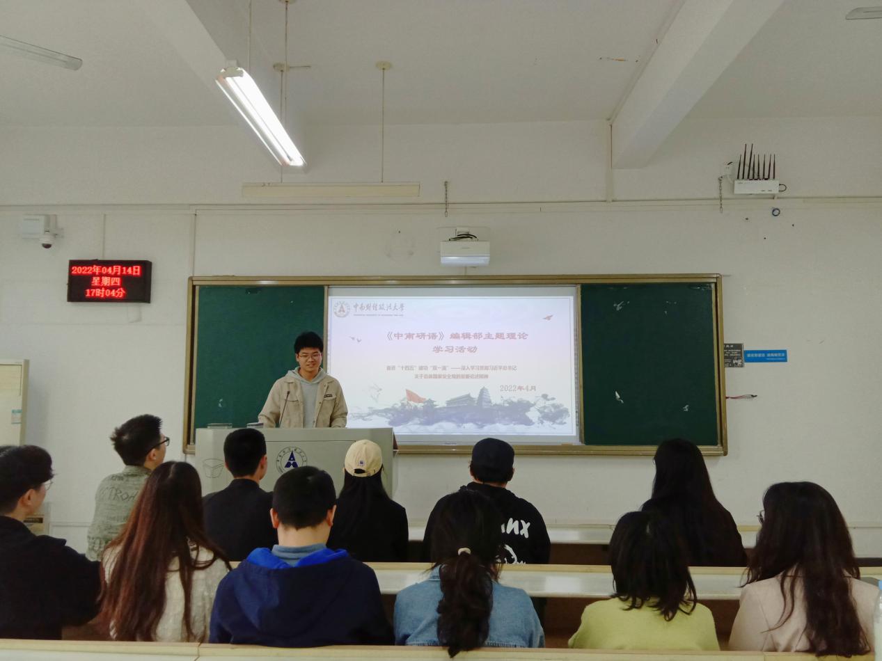 (通讯员 李博睿 张国森)2022年4月14日下午14:30,《中南研语》编辑部在文添101教室举行了国家安全观教育学习会暨第34期报题大会。本次会议由常务副主编柯希鹏与执行主编曹晓宇主持,编辑部全体成员参加。