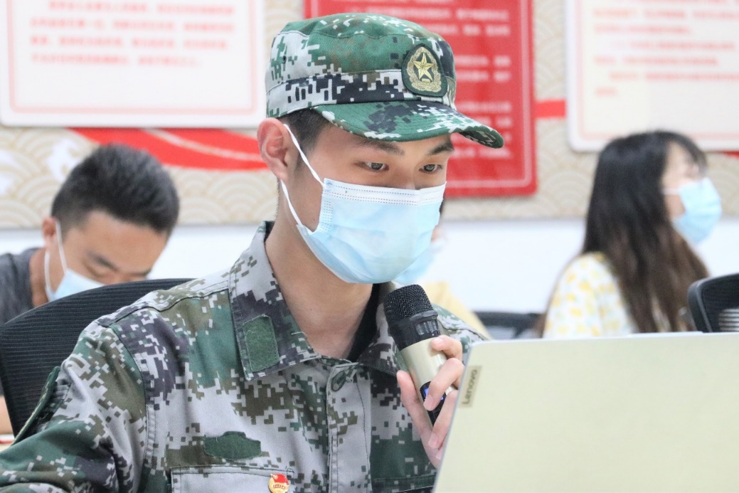 中南财经政法大学刘刚和蒋飞同志分享了学习心得。刘刚表示,延安精神是中华民族优良传统的继承和发展,是我们党的性质和宗旨的集中体现。蒋飞同学结合参军入伍的经历深情讲述到,在执行任务时,经常会被安排在地下通道,看不到国旗升起,但当国歌响起的时候,国旗也在心中徐徐上升。只要心中有国旗,在哪里都是一样的。