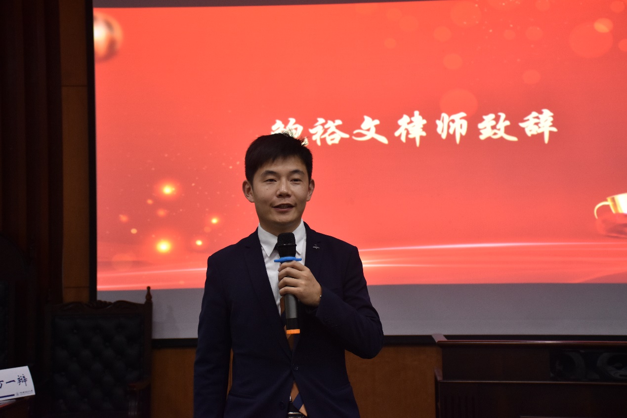 随后,北京德恒(武汉)律师事务所鲍裕文律师代表发言,他回忆以往在“武仲杯”国际仲裁比赛时的辩论经历,指出面对比赛应全力以赴,才能不留遗憾,无论最后结果为何,都会受益良多。