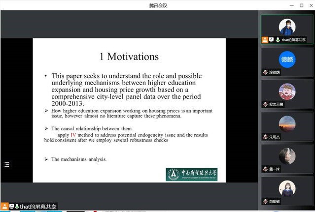 在此基础上,周老师进一步分析本文的文献综述。周老师指出,文献综述不能是简单A学者说、B学者说、C学者说这样的罗列,而是根据你的研究逻辑一点一点的展开。通过对前人研究梳理,周老师发现虽然各大高校在校人数在逐年递增,但是高等教育规模对房价的影响这一问题在相关文献中一直被人们忽略,故而本文就对此问题展开研究。论文基于2000年至2013年间城市和高校经历大跃进的城市面板数据来对高等教育的扩张对中国住房价格上涨这一问题进行实证研究。结果表明,房价的增长在一定程度上受高等教育扩张的影响,此因素所造成的影响占这十三年房价增长的5%左右。工具变量选择1952年的院系调整是本文最大的亮点,充分考虑了潜在的内生性问题并解决后,估计结果依然高度稳健。除此之外,研究结论的多样性源自于本文丰富的异质性结果。研究结果显示,大城市房价的上涨更易受高等教育扩张的影响,若城市的工业结构是以制造业为主,则这种影响更为显著。研究还表明,房价上涨的程度还因高校类型的不同而不同。