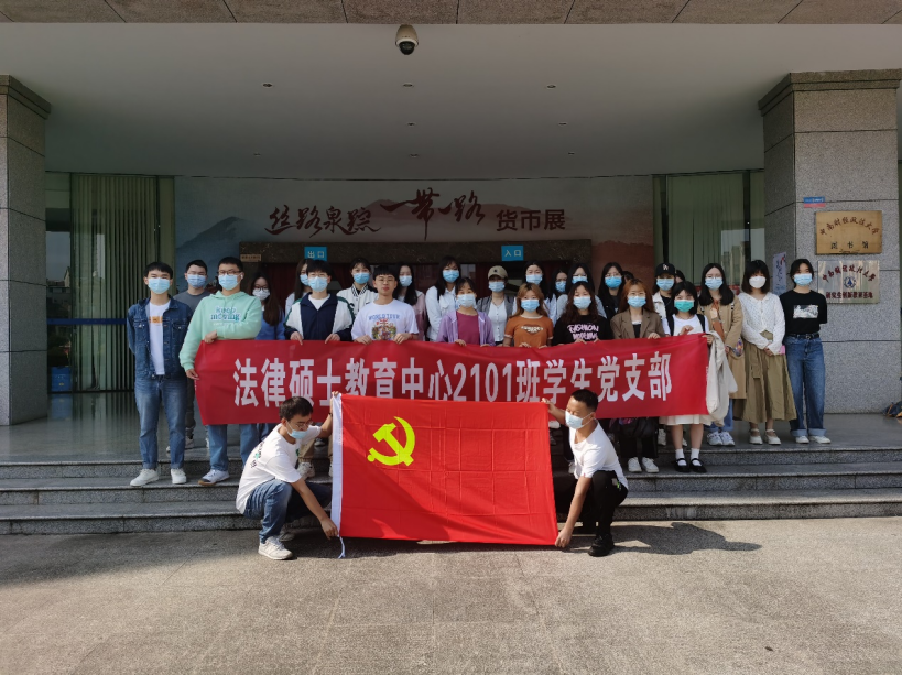 法硕2101班学生党支部全体党员和入党积极分子第一站来到位于逸夫楼图书馆中的中国货币金融历史博物馆进行参观学习。红色货币金融史,可追溯我国近代历史上的重大政治经济变革,梳理货币金融政策律令的发展轨迹,感悟革命前辈的经济思想和管理观念。