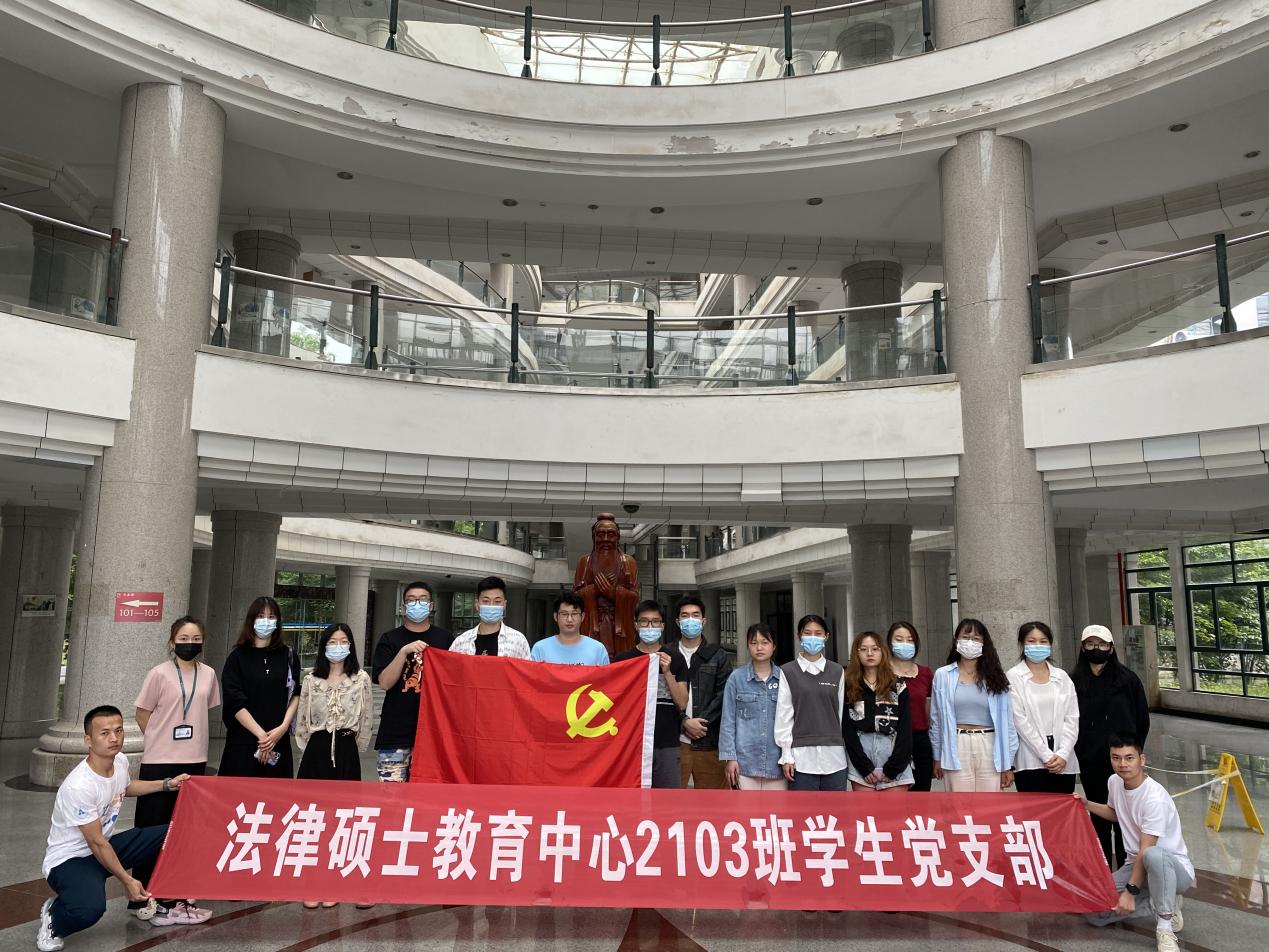 法硕21级涉外律师班党支部全体党员及入党积极分子将文波楼作为最后一站,全体党员在文波楼前重温入党誓词,学习中南大的校史校情,诵读36位毕业于中南大的诗人的作品《山湖集》。