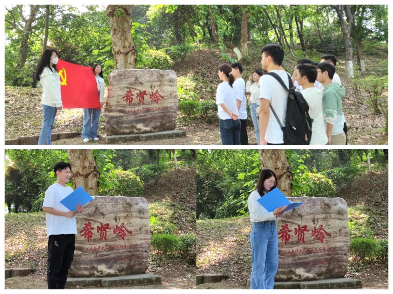 中南财经政法大学的前身中原大学,由时任中共中央中原局第一书记的邓小平同志创立,“希贤岭”取自邓小平同志的曾用名“邓希贤”。在晓南湖畔,希贤岭上,法硕2102班学生党支部全体党员及入党积极分子重温入党誓词,铭先辈之志,抒吾辈情怀。黄金剑同志讲述中南大校史,潘蕊同志领读《长歌行》《为学》等经典诗词。