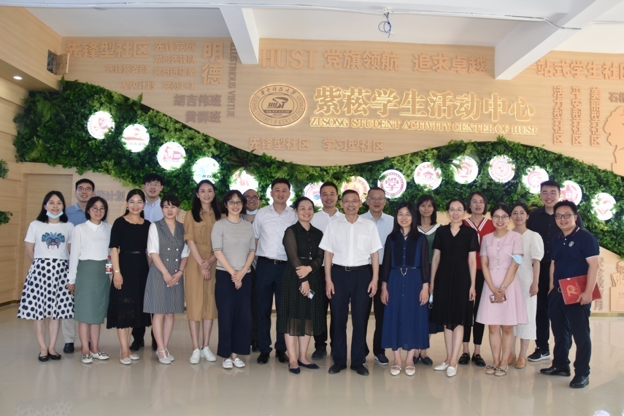 (通讯员 付慧娟 黄丽琼 温晖蕾 摄影 卫瑞)为深入学习贯彻习近平总书记关于教育的重要论述,以深入开展“一站式”学生社区综合管理模式建设工作为契机,进一步加强校际交流合作,学习华中科技大学“一站式”学生社区建设试点先行经验,2022年6月8日上午,由党委研究生工作部肖翠祥部长带队,我校思政工作队伍一行前往华中科技大学开展专题调研。华中科技大学学生工作部研究生工作办公室副主任吴疆鄂、本科生工作办公室副主任李嵩、研究生工作办公室思想教育科科长马胤任、本科生工作办公室事务管理科科长李周密等领导老师陪同调研。