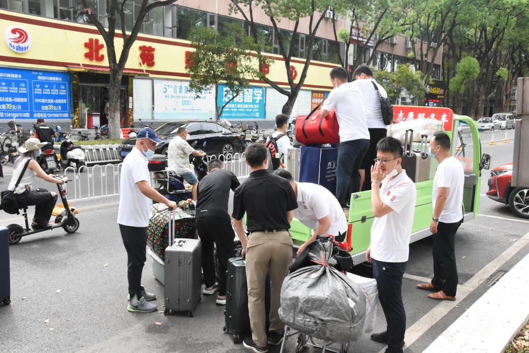 大家按照分工部署,积极服务新生。有的负责引导指路,为新生答疑解惑;有的负责搬运行李,免除新生行李多的后顾之忧;有的负责分发饮用水和防疫物资,提醒工作人员和新生遵守防疫政策,为研究生新生顺利进校报到保驾护航,是迎新现场一道亮丽的红色风景线。