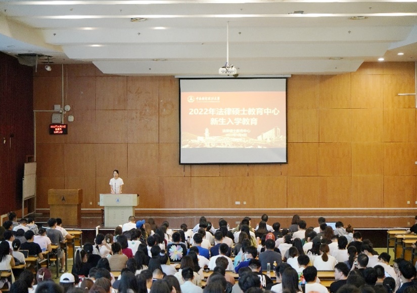 易育书记就中南财经政法大学的校史校情向全体新生进行了介绍。她向新生介绍了学校建立的背景历史和发展历程,阐述了我校初创时期在艰难困苦的环境中所淬炼出的“讲党性,讲团结,顾全大局,坚守岗位,积极工作”等红色精神。易育书记强调,法律硕士教育中心高度重视党支部建设,定期开展参观校史馆、开展党史知识竞赛等各种支部活动,2019年法硕教育中心学生党总支入选教育部“全国高校党建工作样板支部”培育创建计划并于2022年5月顺利通过验收。而后,易育书记就同学们未来的职业规划提出了要求,希望全体新生以就业目标为导向,充分利用好研究生生活的学习期间,丰富自身的经历,为日后的高质量就业打下扎实的基础。