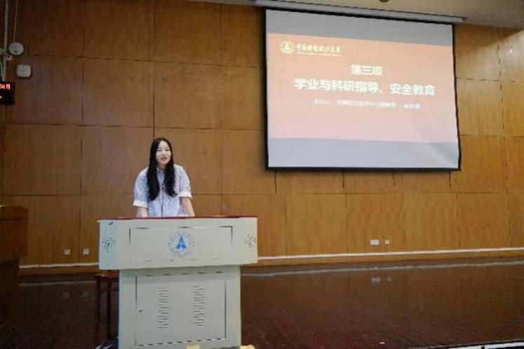 余安琪老师开展了校园安全教育并就研究生培养管理计划向全体新生做了详细的介绍。她谈到,研究生安全教育是高校思想政治教育的一个重要内容和组成部分,也是构筑平安校园,和谐校园,法治校园的重要举措。她从防盗、防火、防电等方面讲述了相关的安全防护措施以及遇到类似危险时可以向学校采取的救助方式,并就法律(非法学)和法律(法学)2个专业的培养管理工作进行了系统而又详细的介绍。