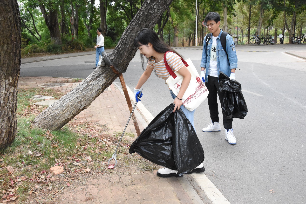 金气才分向此朝,天清林叶拟辞条。残暑尽,昼夜平,秋分刚过,天气微凉,但同学们的劳动热情丝毫不减。上午九时未到,志愿者们便早早集合于指定地点并领取劳动工具,根据划分的责任区域,兵分两路开展示范行动。针对校园面积大,卫生死角多的特点,他们分工明确,配合默契,采用“整体覆盖”、“重点突破”的方式进行卫生清扫,为广大师生营造干净舒适的生活学习环境。