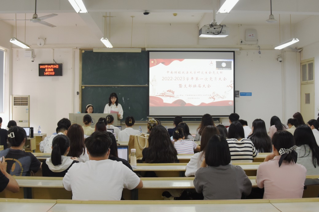 (通讯员 付慧娟 黄丽琼 韦晨依 胡素莉 摄影 李悦欣)为深入学习宣传习近平新时代中国特色社会主义思想,加强校研究生会党支部建设,做好党支部换届选举工作,积极营造喜迎党的二十大的浓厚氛围,9月29日下午,校研究生会党支部在文添楼112教室举行了2022-2023学年第一次党员大会暨支部换届大会。大会由第37届校研究生会主席团成员、校研究生会党支部副书记杨奡同志主持。