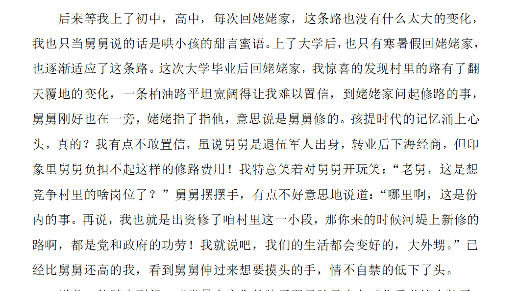 二等奖:《一条路的缩影》(节选)作者:梁子晖(2204班)