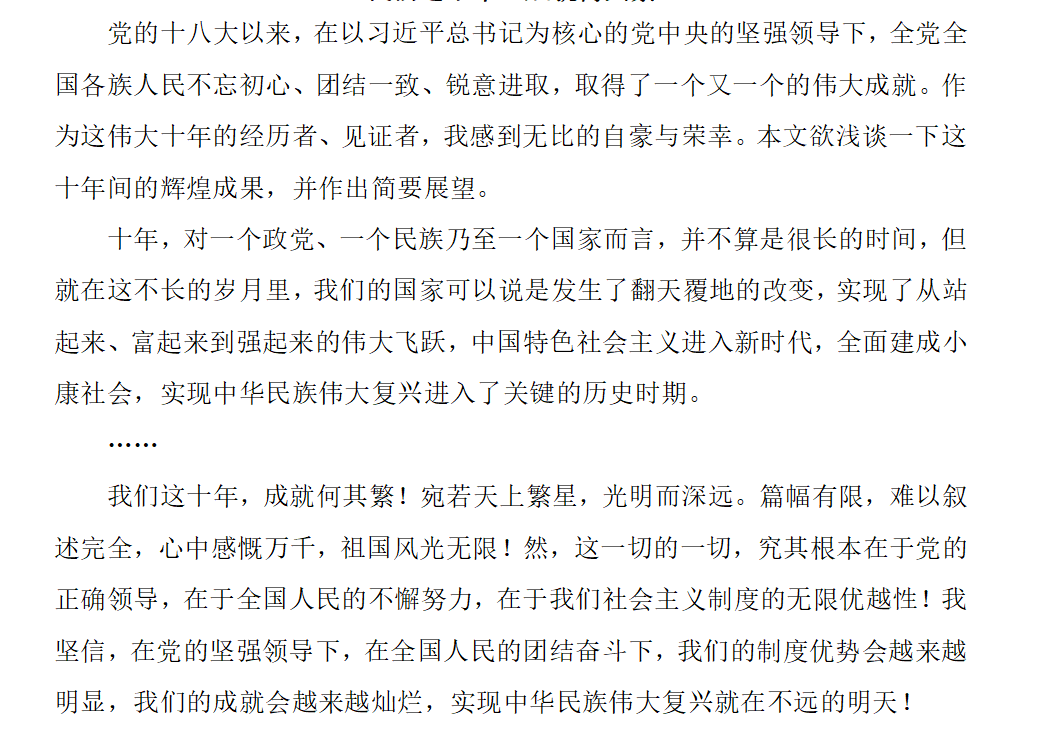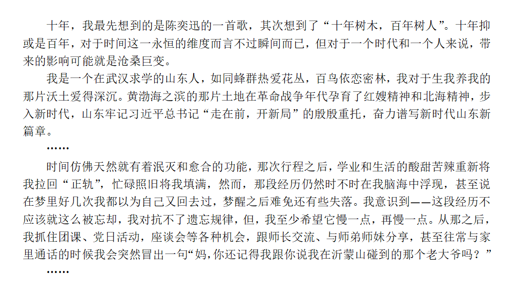 三等奖:《我们这十年,成就何其繁》(节选)作者:高文浩(2203班)