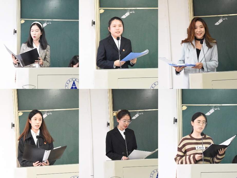 接着,第三十八届校研究生会各部门新成员代表发言。秘书处卢雪、学术部章嘉薇、文体部李想、宣传部张瀚月、生活权益部孙嘉徽、联络服务部刘琰婕分别以自己的亲身经历和切身体会为切入点,分享了加入校研究生会和在部门工作中收获成长的心路历程,并梳理了本部门的主要职责,表示将在未来的工作中不忘初心,珍惜校研究生会提供的平台和机会,做到全心全意服务同学、积极努力提升自我。