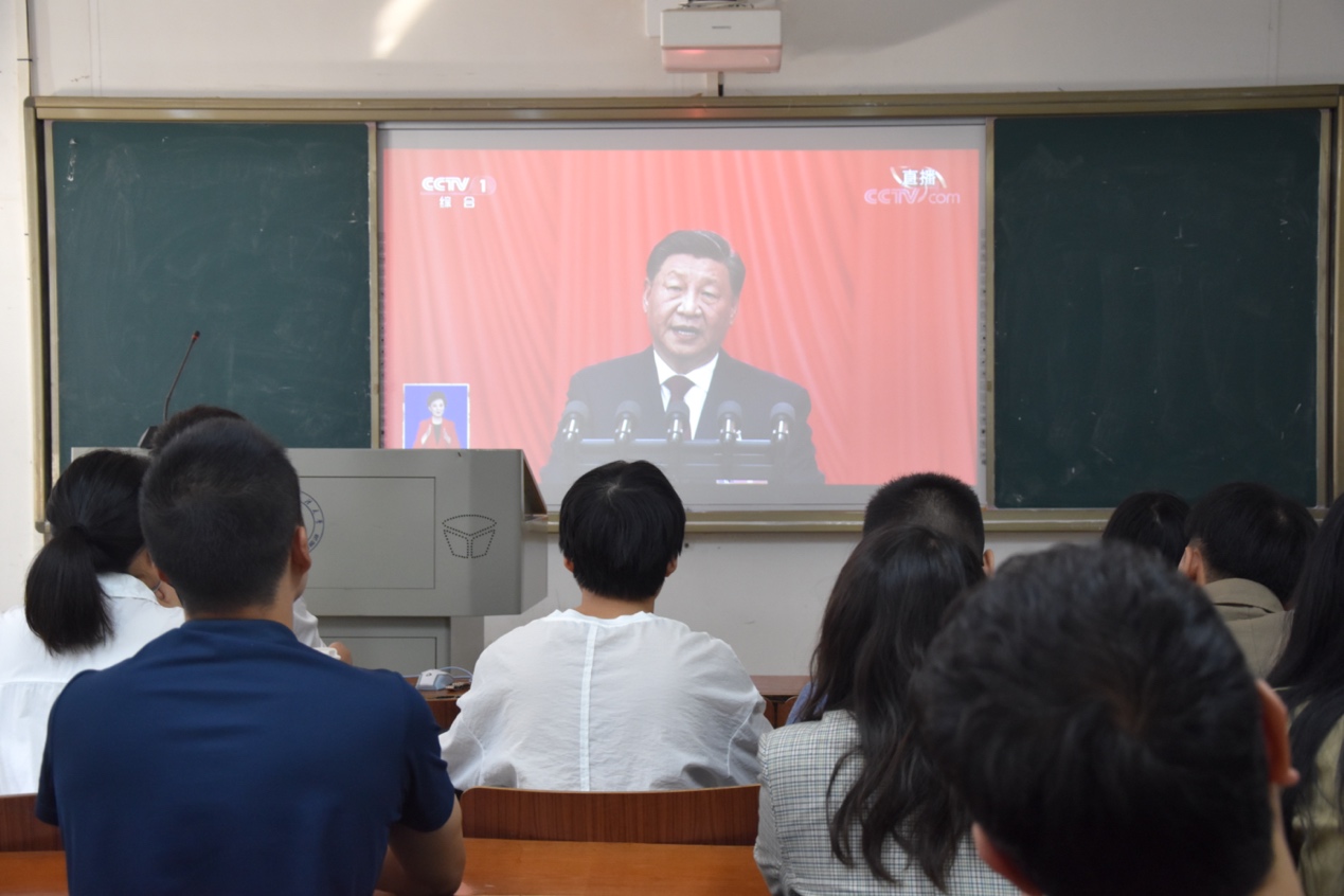 (通讯员 刘昕志、王子秦 摄影 余姝婷)10月16日上午十时,中国共产党第二十次全国代表大会在北京人民大会堂隆重开幕,校研究生会党支部全体成员在文添楼208教室集中观看了大会开幕会直播,与会同志们认真聆听了习近平总书记代表第十九届中央委员会所作的报告。