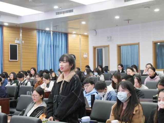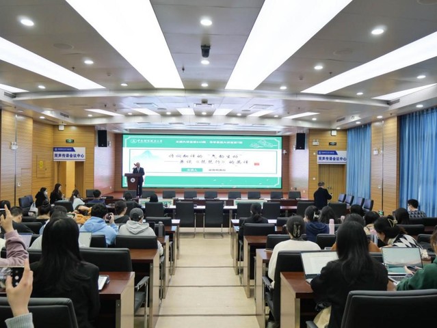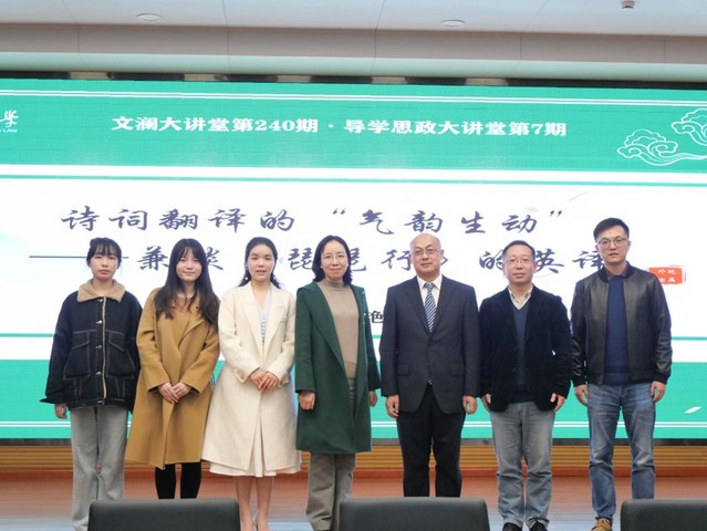 (通讯员 张冉)2022年11月24日下午,第240期“文澜大讲堂”之名家讲坛在文澴楼同声传译国际会议中心开讲。外国语学院谢艳明教授担当本次讲座的主讲人,以《诗词翻译的“气韵生动”——兼谈<琵琶行>的英译》为题,带领全体师生走进诗词世界,领悟中国传统文化之美。本次文澜大讲堂由学院副院长阮全友主持,党委副书记王芹、各导师组代表及新增硕士生导师出席,2022级全体研究生到场聆听。