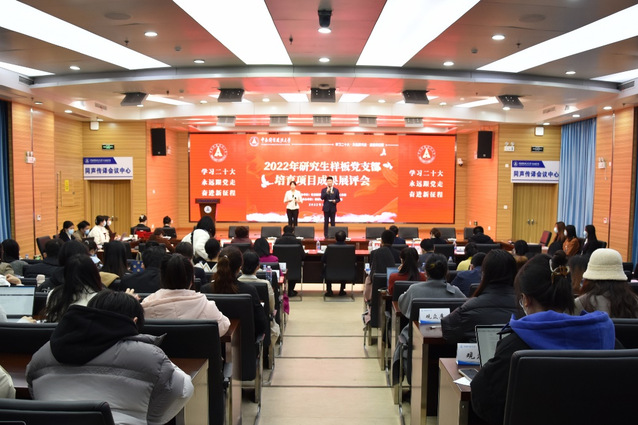 (通讯员 付慧娟 黄丽琼 胡素莉 项小慧 摄影 李悦欣)为学习宣传贯彻党的二十大精神,学习领会习近平新时代中国特色社会主义思想,贯彻落实《中国共产党普通高等学校基层组织工作条例》,巩固拓展研究生党建示范创建和质量创优成效,进一步做好2022年“不忘初心跟党走·青春筑梦新时代”研究生样板党支部培育项目的结项验收评审工作,总结、交流项目培育建设经验,党委组织部、党委研究生工作部于2022年12月9日下午在文澴楼同声传译会议中心举办了2022年研究生样板党支部培育项目成果展评会。