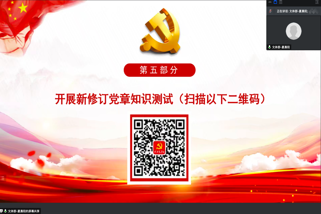 最后,根据活动要求,大家自行扫描新修订党章知识测试的二维码,在会后自行开展测试。