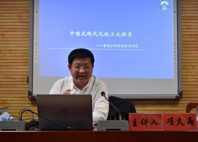 讲座围绕“中国式现代化的三大体系”这一主题,从中国式现代化的知识体系、价值体系以及制度体系这三个方面展开论述。
