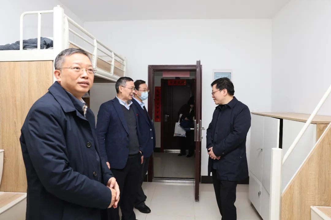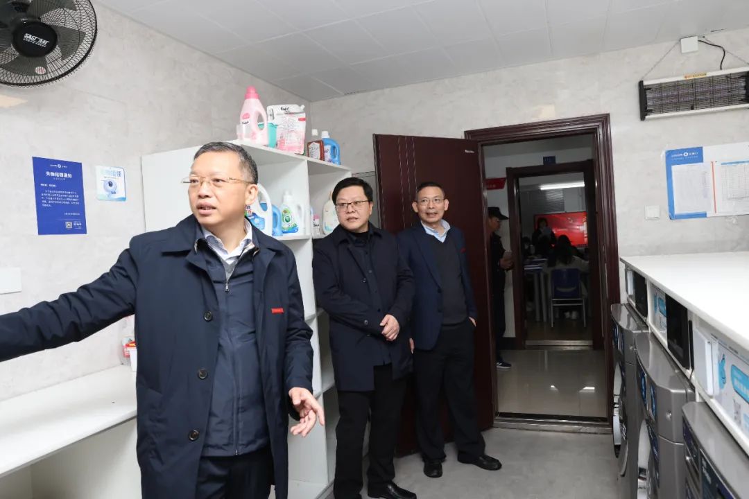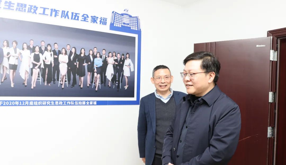 在走访调研望湖驿站时,余先亭依次查看辅导员工作室、辅导员宿舍、朋辈交流中心、导师工作室、就业指导工作室、党员活动室、学术研讨室及自助洗衣房。余先亭现场指导学生开展科研组会的导师、值班值守研究生辅导员及自习的同学们亲切交谈,充分肯定学校拓展育人空间,将研究生“一站式”教育服务深入宿舍的做法。