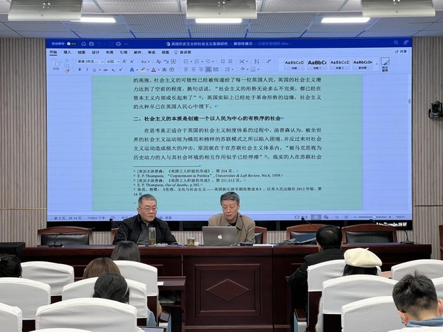 (通讯员:王路芳 李敏 王君俏)2023年3月19日下午,由中南财经政法大学研究生院、党委研究生工作部、中南财经政法大学研究生会主办,中南财经政法大学哲学院研究生会承办的第249期“文澜大讲堂”之名家讲坛在线下顺利开展。本次讲座以“英国历史主义的社会主义思想”为主题,特邀山西省教育厅人文社会科学重点研究基地“区域现代化研究中心”主任、教育部人文社会科学重点研究基地山西大学科学技术哲学研究中心副主任、山西大学马克思主义哲学研究所博士生导师乔瑞金教授莅临文沛楼二楼会议室主讲。哲学院院长王雨辰教授主持,学院部分教师、研究生和本科生参加。