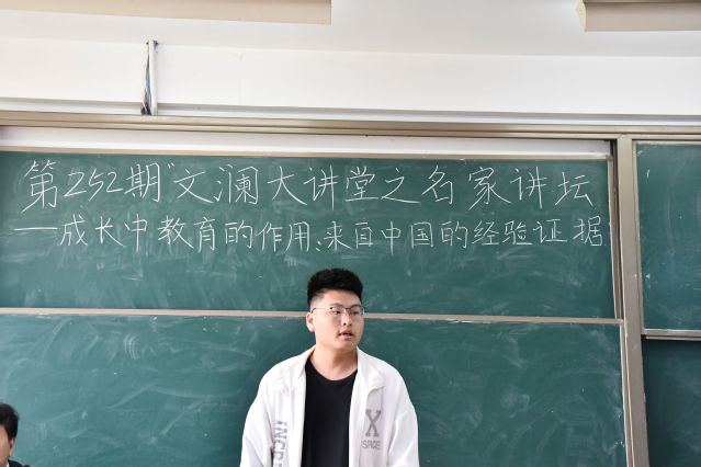 最后,李祥云教授向同学们介绍了学前教育的“增智效应”与“增收效应”。通过总结对89所学校的走访调研结果,李祥云教授得出结论,学生接受过学前教育往往能比未接受过学前教育的学生取得更好的成绩,需要高度重视孩子的学前教育,让孩子读书在起点上。