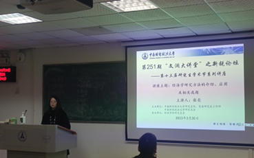(通讯员 岳明泽 毛宠宠)3月30日19:00-20:30,由中南财经政法大学研究生院、党委工作部和校研究生会主办,经济学院研究生会承办的第251期“文澜大讲堂”之新锐论坛在文添楼503成功举办。经济学院张亮老师为本次论坛的主讲人,他围绕经济学研究方法的介绍、应用及相关选题等内容向同学们做了分享。本次论坛共有近百余名经济学院研究生参与,现场学术氛围浓厚。