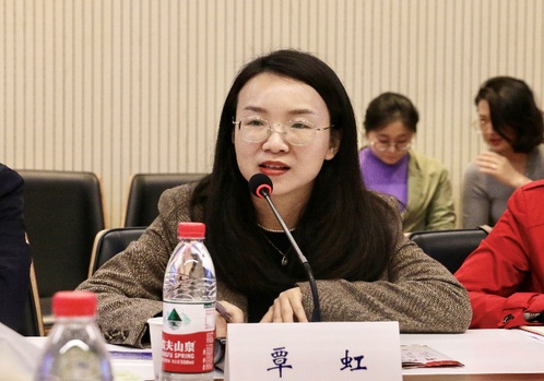 覃虹介绍我校思想政治工作品牌建设开展情况,通过新时代高校铸魂育人质量工程打造“读懂中国”理论书房、通识课程、科学研究、社会实践四个板块,不断拓展育人载体,丰富育人形式。立足“由党创办、建校为党、成长为国、发展为人民”的红色基因,挖掘育人资源,深化红色校史研究。
