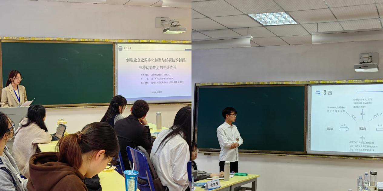 武汉大学硕士研究生聂一鸣分享了题为《制造业企业数字化转型与低碳技术创新:三种动态能力的中介作用》的论文,她聚焦于数字化转型对制造业企业低碳技术创新的影响,从微观视角研究了数字经济的环境效益。中南财经政法大学硕士研究生戴亿坤就其论文《标准化对全要素生产率的影响研究——来自旅游业的准自然实验》展开详细介绍,他基于旅游业标准化试点政策,探讨了旅游业标准化建设对城市旅游全要素生产率的影响。