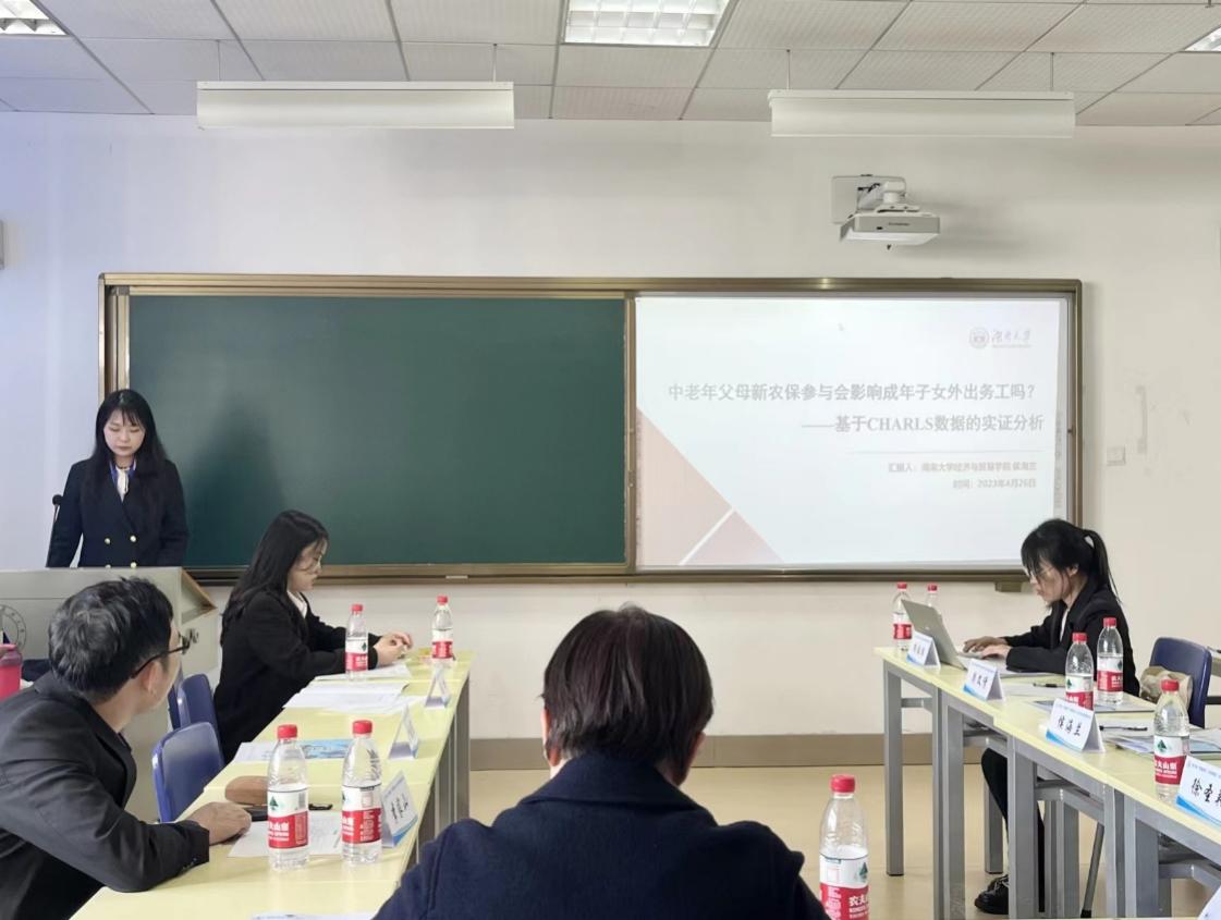 湖南大学硕士研究生侯海兰汇报的论文《中老年父母新农保参与会影响成年子女外出务工吗?——基于CHARLS数据的实证分析》,详细阐述了新农保对农村家庭中成年子女劳动力转移的影响以及隔代照料支持的作用机理路径,强调了构建新型养老保险体系对解决农村养老问题和合理配置城乡劳动力资源的积极作用。