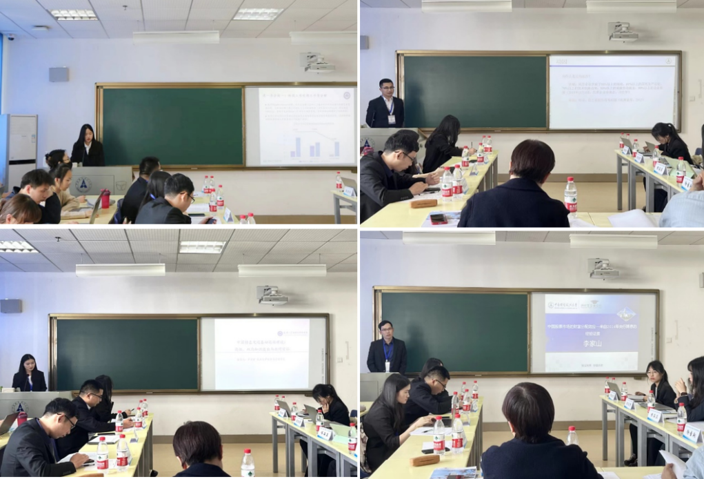 在论文汇报环节,7位作者先后进行汇报展示。武汉大学硕士研究生林晓丹分享题为《家庭责任、工作时间与性别收入不平等》的论文,文章基于中国劳动力动态调查(CLDS)数据,创新利用JMP分解法进一步分解了性别工作时间差距的影响因素。中南财经政法大学博士研究生马栋就其论文《共同富裕:逆向混改与员工劳动收入份额》进行观点阐释,从理论和实证研究分析了我国民营企业逆向混改与员工劳动收入份额之间的关系。武汉大学博士研究生卢洁宜分享了题为《中国特色交通基础设施建设:高铁、双向知识溢出与共同富裕》的论文,她利用双重差分模型分析了中国特色交通基础设施建设对“跨区域知识溢出障碍”的影响,并从共同富裕的角度探讨了高铁的社会性收益。广东外语外贸大学博士研究生李家山对《中国股票市场的财富分配效应——来自2014年央行降息的经验证据》一文进行报告,李家山从微观层面借助倾向得分匹配-双重差分(PSM-DID)模型研究了中国股市的财富分配情况。