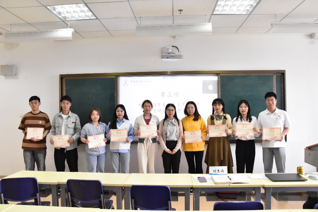 会上,付慧娟老师为宣讲团成员代表颁发聘书,并对新成员提出五“讲”要求:一是讲政治,宣讲团成员要提高政治站位,强化理论武装,旗帜鲜明地表达政治方向、政治立场和政治观点;二是讲格局,大家在确定宣讲主题和内容时应充分体现出研究生党员的家国情怀、社会理想和开阔胸襟;三是讲情怀,要立足对宣讲事业的热爱,以饱满的热情和真挚的情感开展宣讲,用真情实感打动观众;四是讲热点,强化理论宣讲的时效性,从小切口入手讲大道理;五是讲纪律,宣讲团成员要自觉践行加入宣讲团的初心使命与责任担当,以实现自我管理、自我成长、自我学习。