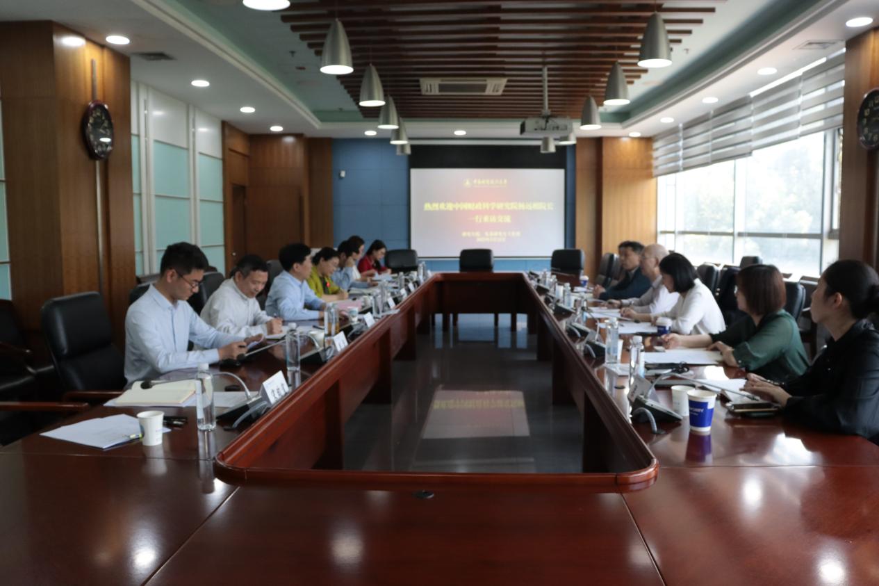 (通讯员 宋昀宜 李姝樊 摄影 宋昀宜)5月12日下午,中国财政科学研究院党委委员、研究生院院长杨远根、研究生院招生与就业办公室主任张维、研究生院学生工作处处长郭辉、研究生院教务处干部刘欢、研究生院招生就业办公室干部金瑞聪、研究生院学生工作处干部梁栋一行来我校开展研究生教育高质量发展专题调研。我校党委常委、副校长申祖武、研究生院院长胡弘弘、党委研究生工作部部长兼副院长肖翠祥、研究生院副院长王华、就业指导服务中心副主任周尧、研究生院副院长黄雯、研究生院、党委研究生工作部办公室主任宋昀宜、党委研究生工作部研究生思政办主任付慧娟参加座谈会。胡弘弘院长主持座谈会。
