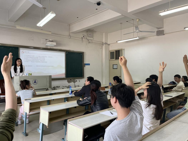 复赛现场气氛十分热烈。辅导员赵元元、江为民老师出席此次活动。参赛选手们在第一轮“必答题”中状态良好,默契配合,纷纷举手,踊跃回答,形成了激烈的比分争夺。在第二轮“抢答赛”中,参赛选手们开始稳中求进,谨慎作答,既保证准确性,又追求答题量和速度。最终,经过两轮紧张激烈的角逐,复赛决出了一等奖一组,二等奖两组和三等奖三组。现场的选手们情绪高昂、沉着应战,充分展示了扎实的党史理论基础和斗志昂扬的精神状态,既体现了个人风采,又展现了团队合作精神。最后,参加复赛的同学们与工作人员和老师们集体合影留念,在热烈的掌声中,复赛完美落幕。
