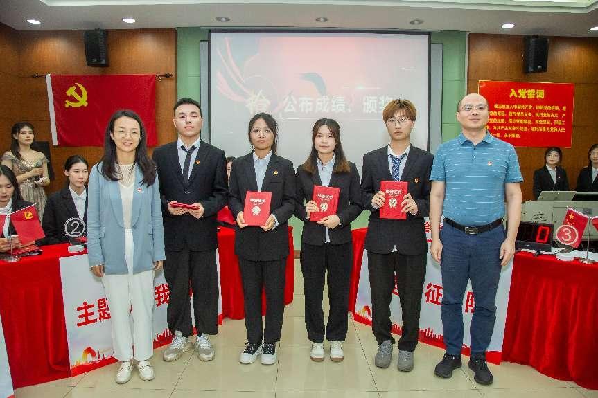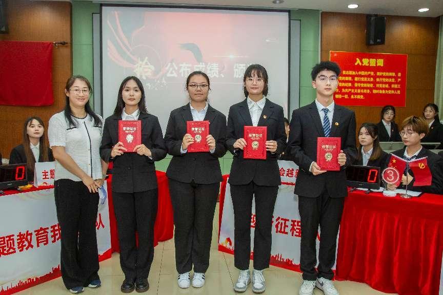 校党委组织部副部长陈金川、校党委宣传部副部长覃虹为获得一等奖的队伍“会越新征程队”颁奖,校党委学生工作部副部长石凌为获得二等奖的队伍“国泰民安队”颁奖,会计学院党委书记殷修林为获得三等奖的队伍“主题教育我最强队”和“锦绣中南大队”颁奖,会计学院党委副书记胡桂锬为党支部风采展示获奖党支部颁奖。