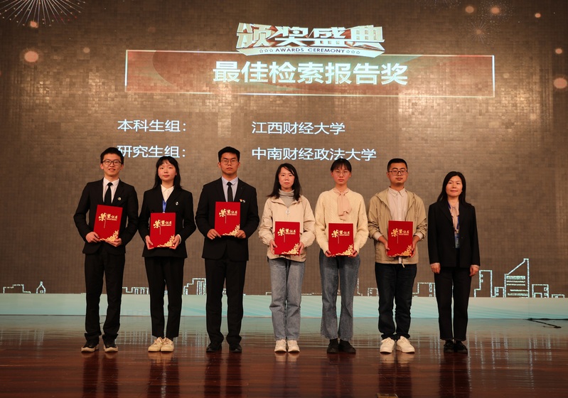 大赛以“信息搜索·知识发现·价值创造”为主题,总决赛采取检索报告撰写与PPT制作、线上答题和线下展示汇报的方式进行,来自全国39所财经高校的39支本科生代表队和22支研究生代表队参加了比赛。法律硕士教育中心2022级研究生汪星宇、马齐琳和公共管理学院朱璟暄在中南大赛区中脱颖而出,代表中南财经政法大学参与全国决赛。比赛中,凭借优秀的在线答题成绩、出色的检索报告和精彩的PPT展示汇报,最终从全国的参赛队伍中脱颖而出,夺得研究生组一等奖和研究生组最佳检索报告奖。
