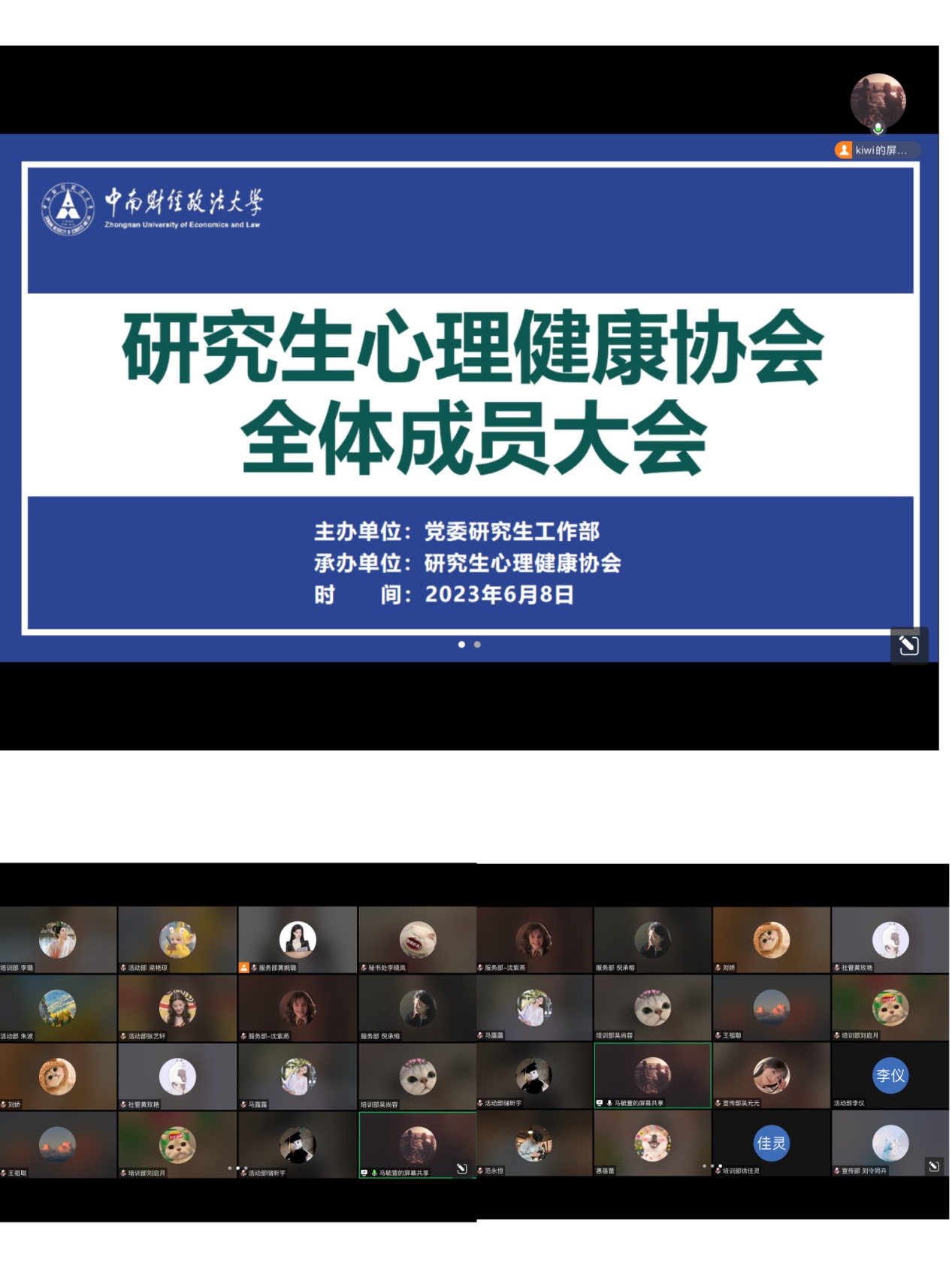 (通讯员 黄丽琼 刘令同卉 摄影 唐应冰薇)为做好研究生心理健康协会换届工作,健全和完善社团运行机制,加强组织建设,促进社团积极健康发展,6月8日下午,研究生心理健康协会(以下简称研心协)在文澴楼515以线上线下的形式举行全体成员大会暨换届大会。心理健康教育咨询中心专职教师、研心协指导教师余金聪副教授,党委研究生工作部思政办黄丽琼老师出席大会。