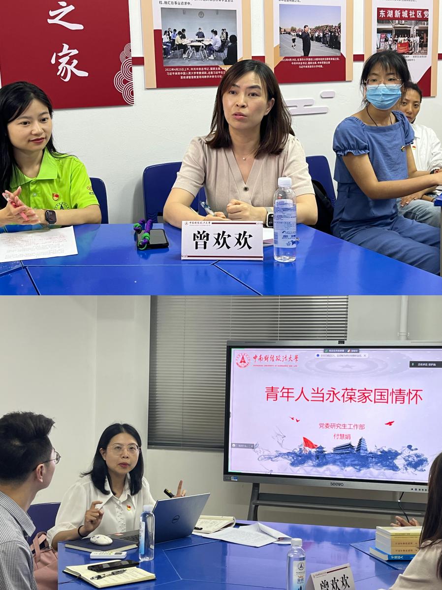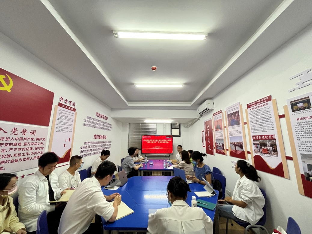 (通讯员 万雯 摄影 卢俊怡) 为全面学习宣传贯彻习近平新时代中国特色社会主义思想及党的二十大精神,深入推进学习贯彻习近平新时代中国特色社会主义思想主题教育走深走实、入脑入心,进一步提升我校研究生党员理论宣讲团(以下简称宣讲团)主题宣讲质量和水平,6月15日18:30,宣讲团“朋辈示范宣讲”暨集体备课活动在望湖驿站党员活动室举行。教育部直属高校主题教育第八巡回指导组成员、湖南大学党委统战部副部长曾欢欢老师莅临指导,校党委组织部曹运波老师、党委研究生工作部付慧娟老师与宣讲团全体成员参加备课会。