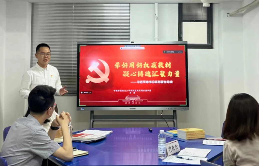 宣讲团成员代表肖勇同志和孙逸芳同志作示范宣讲。肖勇同志以《学好用好权威教材 凝心铸魂汇聚力量——习近平总书记系列著作导读》为题,围绕为什么要学习习近平总书记著作、习近平总书记著作的学习目标,从三个外交小典故切入向大家介绍了习近平总书记系列著作并结合涉外法治专业推荐了相关书籍,以亲身实践分享了自己的读书方法。孙逸芳同志围绕《坚持问题导向 把握时代声音》主题,以党的二十大报告中的“六个必须坚持”为引,结合学校红色校史,以学校建校、发展、建设历程中的实际问题为切入点展开宣讲,指出“必须坚持问题导向”的重要性。