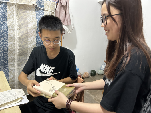 此外,综合本次支教的听课及互动情况,“七元五次方程组”社会实践团队在课程结束后也走进了本次认真听课、积极互动的同学家中,为其送出了定制礼物,深入了解他们的实际情况与听课感受,希望以此为出发点调整未来燕园学社的课程设置。其中,来自武汉二中的舒钰童表示,“在学校,老师讲课的进度相对较快,对于基础较差的同学,可能存在跟不上老师节奏、听不懂这样的情况,而燕园学社的授课则往往从学生视角出发,重在夯实基础,正好可以与课堂教学相辅相成”;来自广东广雅中学的付佳龙同学表示“燕园学社的录播课是我最喜欢的环节,尤其是最后一课关于专业分享、未来职业规划的相关内容。在听取了各位学长学姐的分享后,我对自己的未来发展有了更清晰的认知。也希望未来有机会可以加入到燕园学社,将我接收到的这份爱传递下去”。