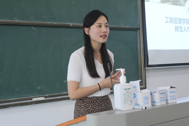 徐一菱老师首先向同学们介绍了工商管理学院2023级研究生开学日程安排及入学教育系列活动,并围绕学校及学院教育管理规定、研究生日常管理与奖助体系、学院学科资源等展开讲解,鼓励大家积极投身学术科研,实现自身全面发展。徐老师还提醒新生要增强安全意识,谨防电信诈骗,注意电动自行车行驶安全,禁止飞线冲电。