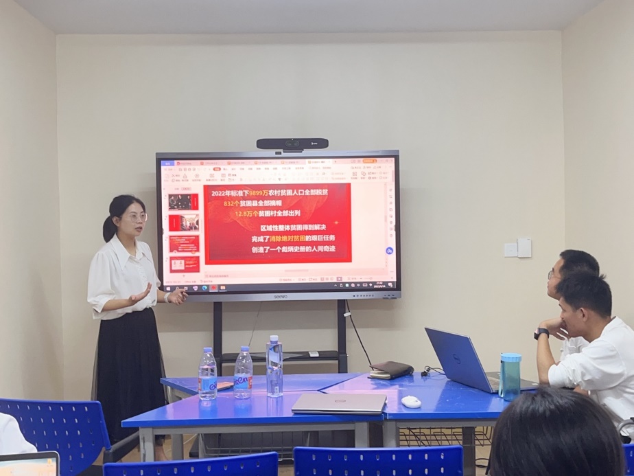陈梦洁同志以《扎根祖国大地,让青春绽放绚丽之花》为题,与大家共同品读了《习近平的七年知青岁月》这本有字之书,并通过回顾习近平总书记的青年奋斗经历,探索其背后隐含“扎根精神”的无字之书。