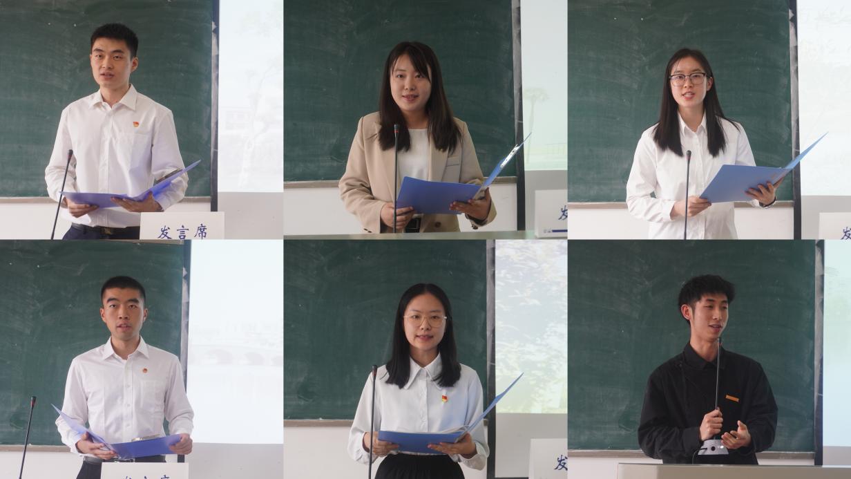 随后第三十九届校研究生会各部门新成员代表发言。秘书处严宇飞、学术部李其轩、文体部吕茜、宣传部庄原通、生活权益部陈鸣璐、联络服务部吴泽乾以自身经历为引,分享了加入校研究生会的感想,并结合部门工作职责畅谈心得和体会。